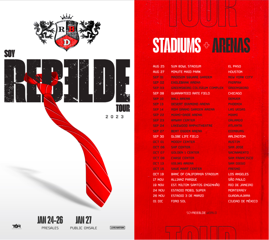 A primeira data da turnê será especial tanto para a banda quanto para os fãs. O show será realizado no estádio Sun Bowl em El Paso, Texas, localizado perto da fronteira Estados Unidos/México. O estádio de 40 mil lugares simboliza o apelo multicultural do RBD e o seu impacto revolucionário na cultura que une muitas nações. O grupo vai se apresentar em grandes estádios em Dallas, Houston, Chicago e Los Angeles, bem como em arenas icônicas como Madison Square Garden, em Nova Iorque; Grand Garden Arena, em Las Vegas; Viejas Arena, em San Diego, entre outros. No México, irão tocar no emblemático Foro Sol, na Cidade do México, enquanto o Allianz Parque, em São Paulo, e o Estádio Nilton Santos (Engenhão), no Rio de Janeiro, acolherão o RBD no Brasil.